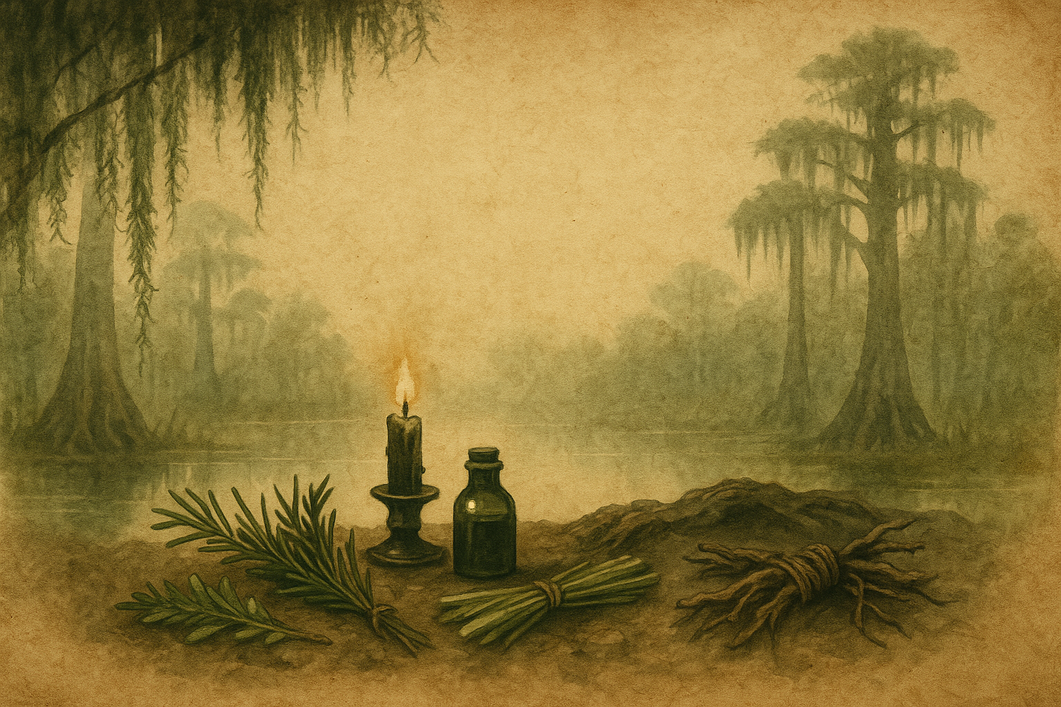 - Swamp Healing Oil (Bayou Stillness or a blend with lavender, vetiver, rosemary)