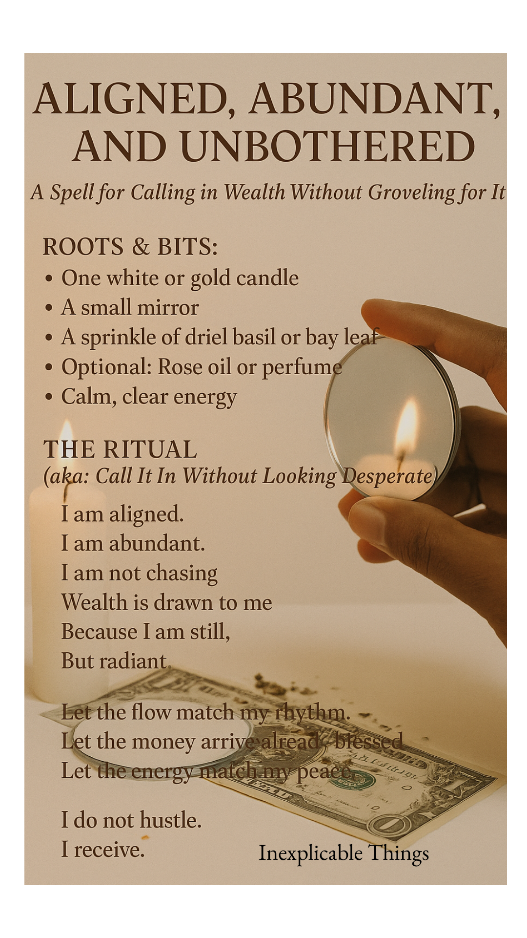 Now go charm the coins, command your worth, and let the world adjust to your frequency. The spell’s cast. The candle’s lit. The universe has been politely threatened.